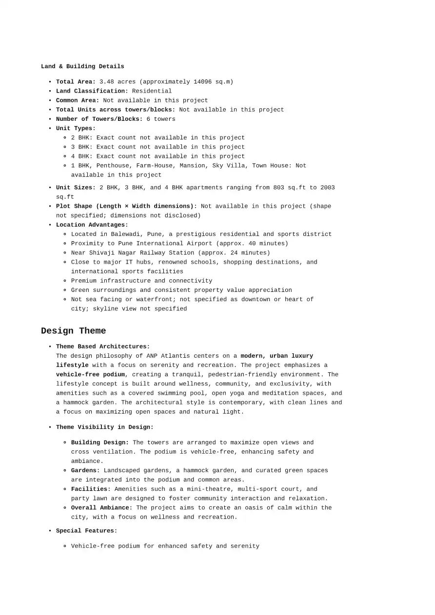 The design philosophy of ANP Atlantis centers on a modern, urban luxury lifestyle with a focus on serenity and recreation. The project emphasizes a vehicle-free podium, creating a tranquil, pedestrian-friendly environment.